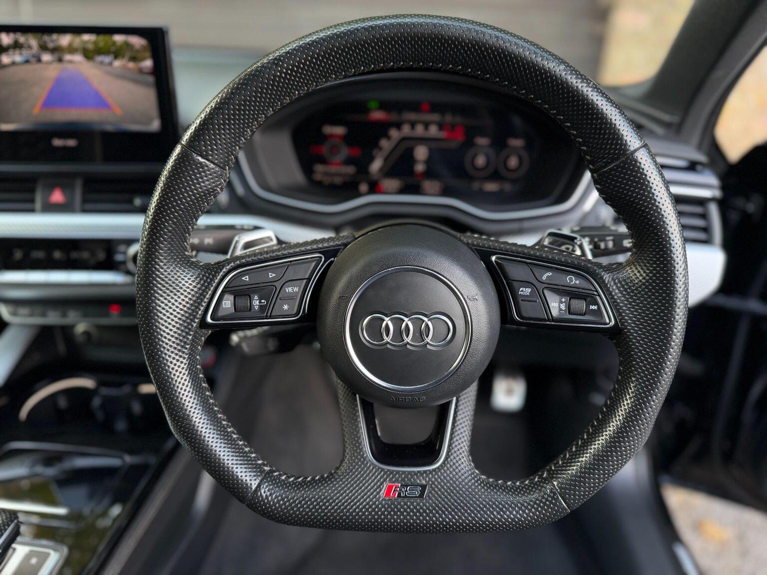 Technology and safety are at the forefront, with adaptive matrix headlights, cruise control, RS drive modes, reversing camera, Audi Side Assist, Blind Spot Assist, and Audi Pre-Sense, giving you the confidence and convenience expected from a modern performance vehicle.