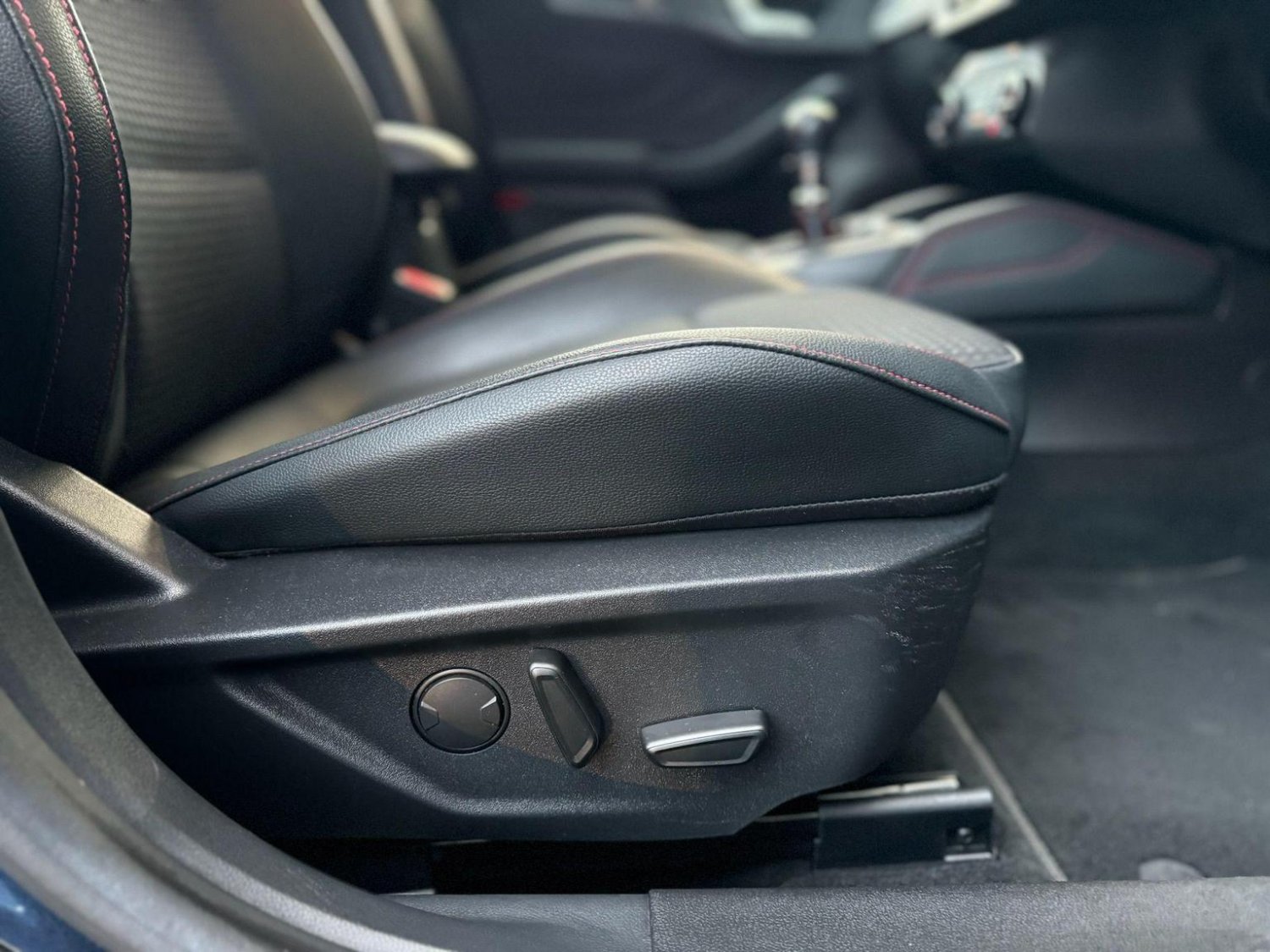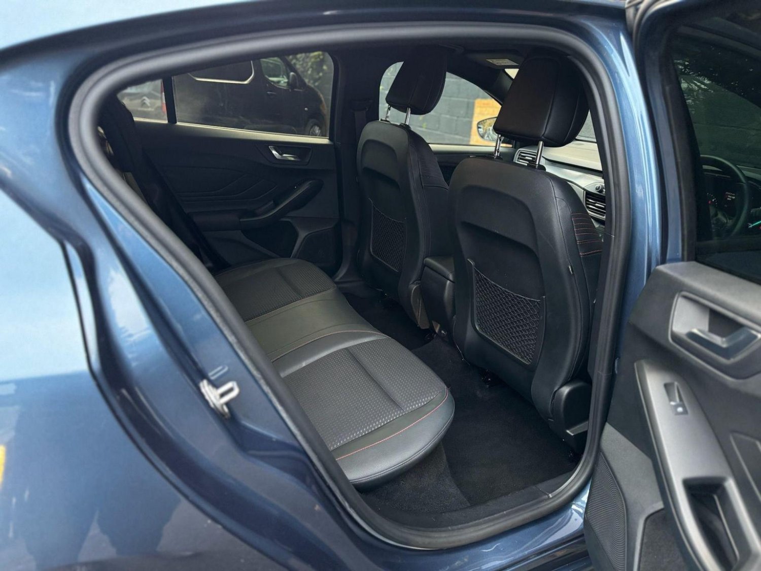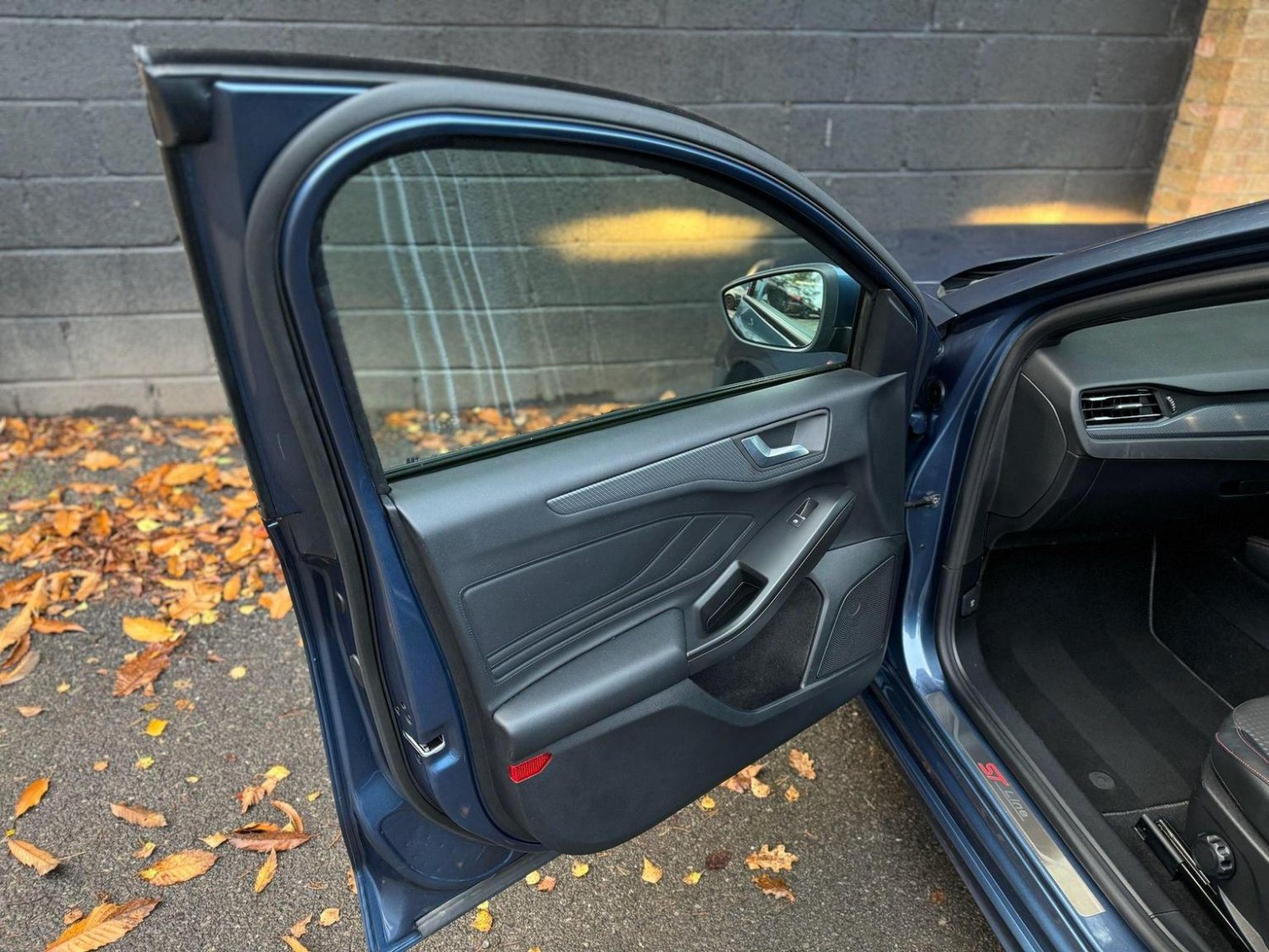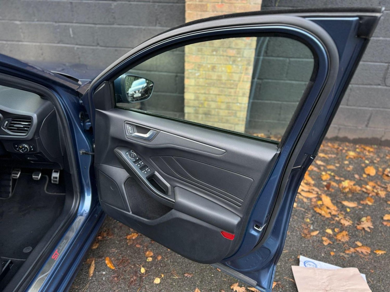 The exterior showcases an aggressive ST-Line body kit, enhanced by 18-inch diamond-cut alloys with striking red calipers. Xenon headlights with LED daytime running lights and rear LED lights not only add to its sporty appearance but also improve visibility. Privacy glass completes the sleek, modern look.